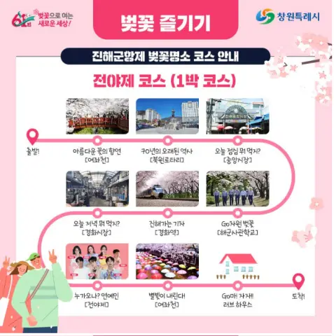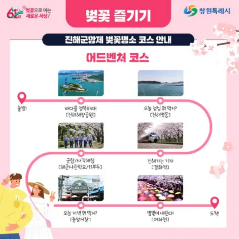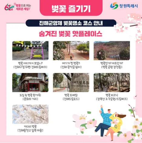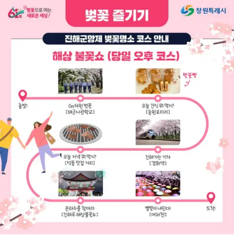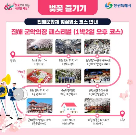 - 주요 행사 명소 : 진해공설운동장, 중원로터리, 경화역, 여좌천, 해군사관학교 등